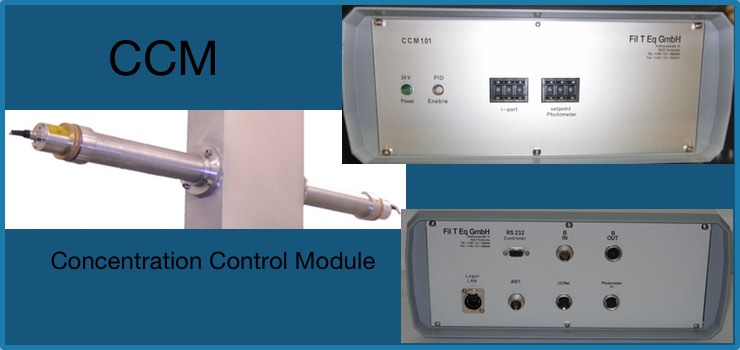 In filter testing a well defined and constant dust concentration in the dirty gas upstream of the filter sample is essential Our NEW CCM - Concentration Control Module In connection with our laser-photometer the new device is made to compensate for the changes in volumetric feeding and/or |